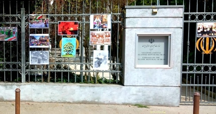 نصب تصاویر شهدای دانش آموز مدرسه میناب در سفارت
